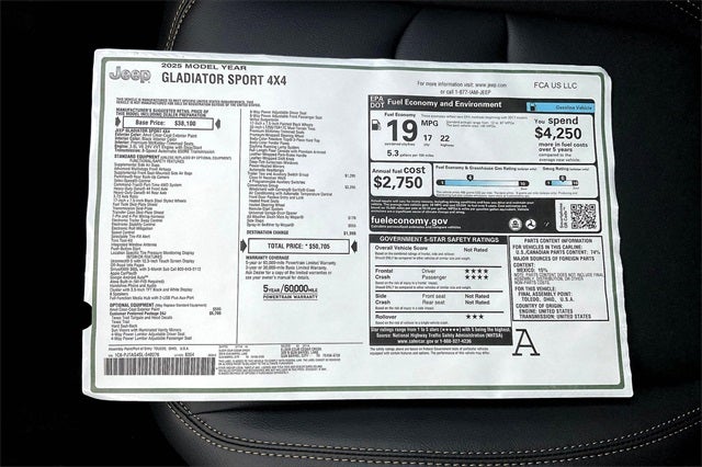 Anvil Clearcoat 2025 Jeep Gladiator Sport 4WD 8-Speed Automatic 3.6L V6 24V VVT Price includes: $2250 - 2025 National Retail Bonus Cash . Exp. 02/02/2026