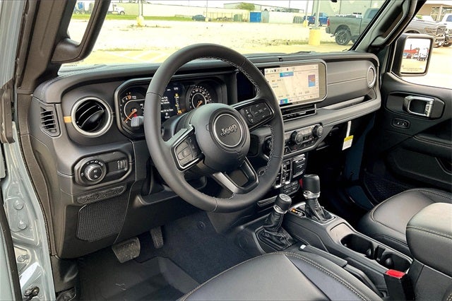 12.3 Touchscreen Display, 97 MPH Vehicle Max Speed Calibration, ABS brakes, Advanced Brake Assist, Apple CarPlay, Apple CarPlay/Android Auto, Automatic Headlamps, Auxiliary Switches, Body Color 3-Piece Hard Top, Body Color Fender Flares (2-Piece), Class IV Receiver Hitch, Compass, Convenience Group, Corning Gorilla Glass, Daytime Running Lamp System, Deep Tint Sunscreen Windows, Delay-off headlights, Electronic Stability Control, Emergency/Assistance Call, Freedom Panel Storage Bag, Front Door Locks 2-Door Passive Entry, Front fog lights, Full Length Floor Console Premium Armrest, Full Speed Forward Collision Warning Plus, Hard Seat Back, Heated Front Seats, Heated Steering Wheel, Heavy-Duty Engine Cooling, Illuminated entry, Integrated Radar Camera Module (IRCM), Leather Wrapped Park Brake Handle, Leather Wrapped Shift Knob, Low tire pressure warning, MOPAR All-Weather Slush Mats, ParkView Rear Back-Up Camera, Power 4-Way Driver Lumbar Adjust, Power 4-Way Passenger Lumbar Adjust, Power Adjust 8-Way Driver Seat, Power Adjust 8-Way Front Passenger Seat, Power Heated Mirrors, Premium Door Trim Panel, Premium McKinley Trimmed Seats, Premium Wrapped Steering Wheel, Quick Order Package 24J Texas Trail, Radio: Uconnect 5 w/12.3 Display, Rear Armrest w/Cupholder Seat, Rear Sliding Window, Rear Window Defroster, Remote keyless entry, Remote Start System, Security Alarm, Speed control, Sun Visors w/Illuminated Vanity Mirrors, Texas Trail, Texas Trail Tailgate & Hood Decals, Traction control, Trailer Hitch Zoom, Trailer Tow & Aux Switch Group, Universal Garage Door Opener, Wheels: 17 x 7.5 Painted Black, Willys Suspension.