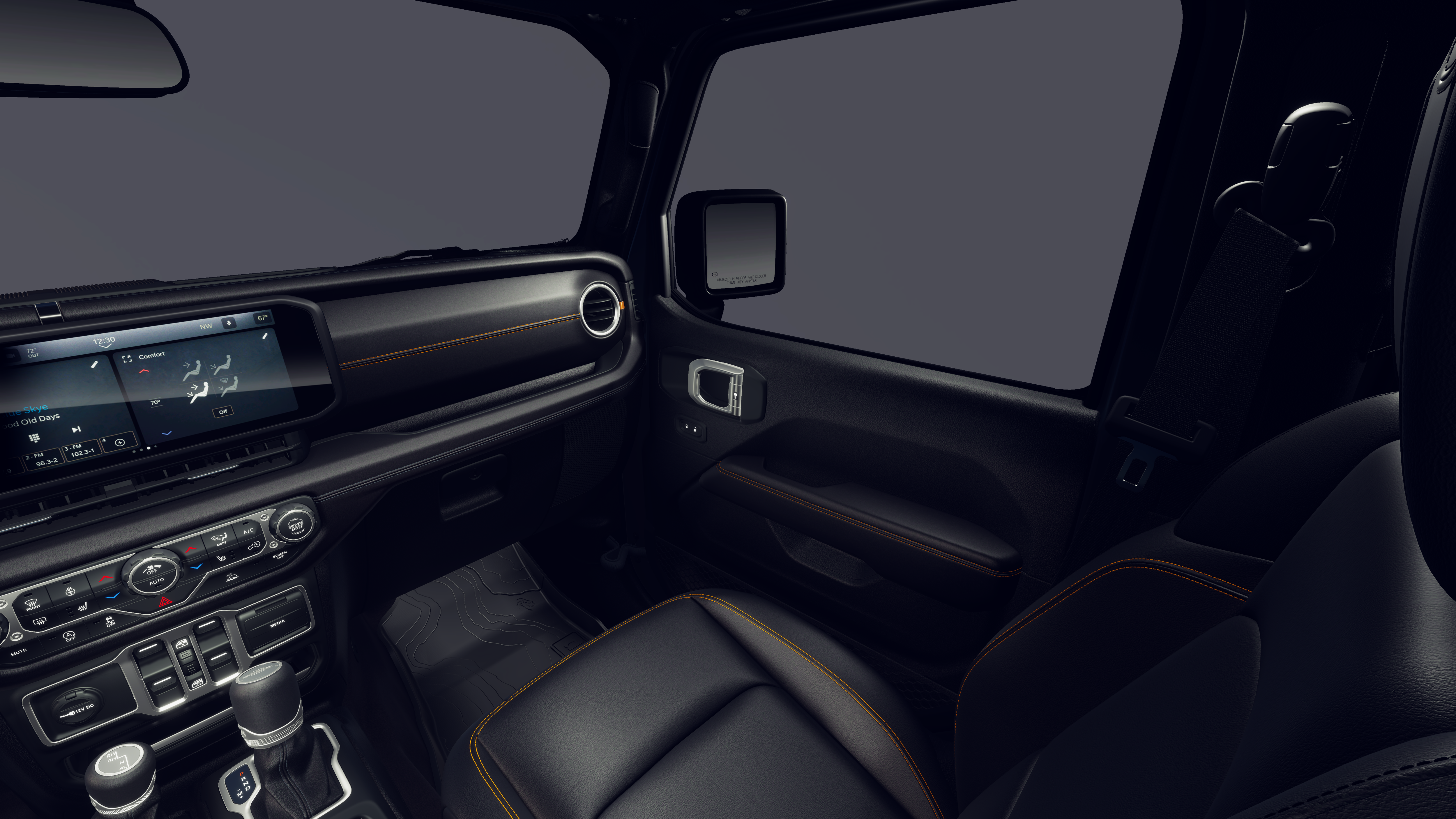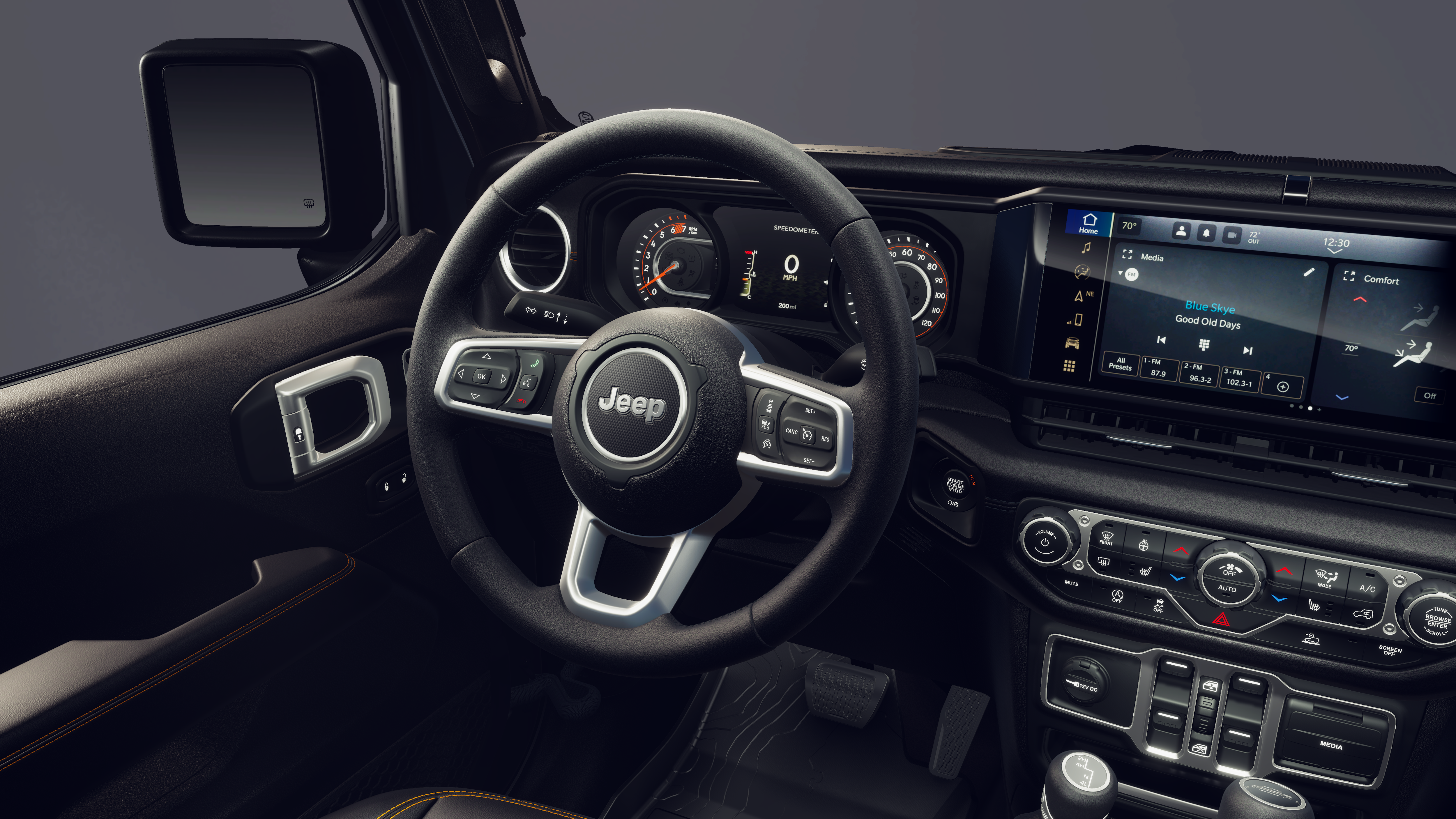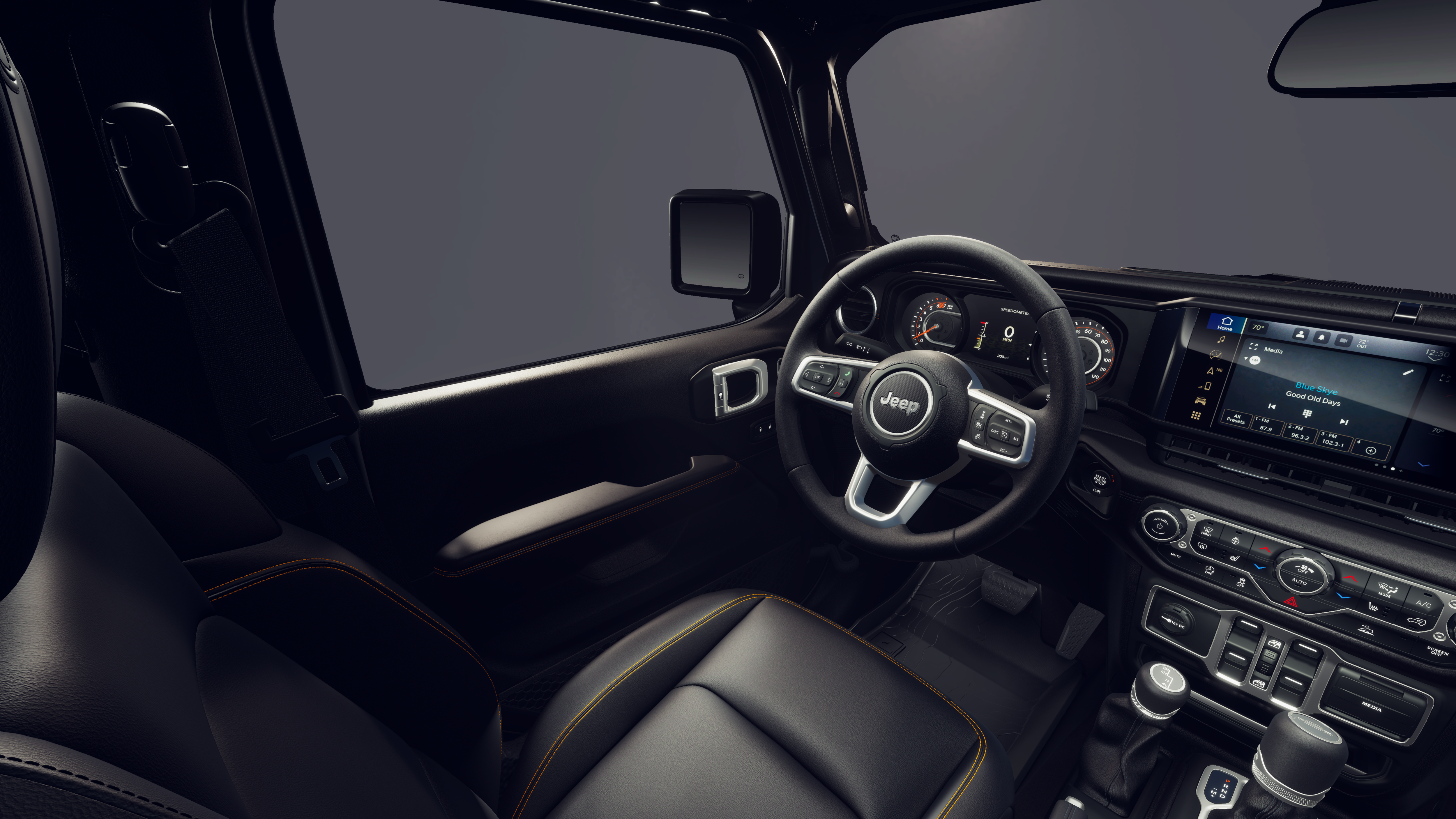 110 Mph Vehicle Max Speed Calibration, 12.3 Touchscreen Display, 2-Piece Body Color Fender Flares, 4G LTE Wi-Fi Hot Spot, 8 Speakers, ABS brakes, Advanced Brake Assist, Air Conditioning with Auto Temp Control, Alexa Built-in, AM/FM radio: SiriusXM with 360L, Apple CarPlay, Apple CarPlay/Android Auto, Automatic Headlamps, Body Color 3-Piece Hard Top, Brake assist, Central ADAS Decision Module (CADM), Cluster 7.0 TFT Color Display, Compass, Corning Gorilla Glass, Daytime Running Lamp System, Daytime Running Lamps LED Accents, Deep Tint Sunscreen Windows, Delay-off headlights, Dual front impact airbags, Dual front side impact airbags, Electronic Stability Control, Emergency/Assistance Call, Freedom Panel Storage Bag, Front anti-roll bar, Front Bucket Seats, Front Door Locks 2-Door Passive Entry, Front fog lights, Front LED Fog Lamps, Full Length Floor Console Premium Armrest, Full Speed Forward Collision Warning Plus, Google Android Auto, Hard Seat Back, Heated Front Seats, Heated Steering Wheel, Illuminated entry, Integrated roll-over protection, Leather Wrapped Park Brake Handle, Leather Wrapped Shift Knob, LED Headlamp and Fog Lamp Group, LED Premium Reflector Headlamps, Low tire pressure warning, Normal Duty Plus Suspension, Occupant sensing airbag, Overhead airbag, Panic alarm, ParkView Rear Back-Up Camera, Power 4-Way Driver Lumbar Adjust, Power 4-Way Passenger Lumbar Adjust, Power Adjust 8-Way Driver Seat, Power Adjust 8-Way Front Passenger Seat, Power Heated Mirrors, Power windows, Premium Door Trim Panel, Premium McKinley Trimmed Seats, Premium Wrapped Steering Wheel, Quick Order Package 24H Sahara, Radio: Uconnect 5 with 12.3 Display, Rear anti-roll bar, Rear Armrest with Cupholder Seat, Rear Sliding Window, Rear Window Defroster, Remote keyless entry, Remote Start System, Sahara, Sahara Badge Neutral Gray, Security Alarm, Speed control, Steering wheel mounted audio controls, Sun Visors with Illuminated Vanity Mirrors, Telescoping steering wheel, Tilt steering wheel, Traction control, Universal Garage Door Opener, Variably intermittent wipers, Wheels: 18 x 7.5 Machined/Painted Gray.