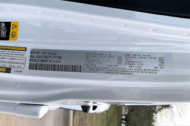 Bright White Clearcoat 2026 Jeep Gladiator Texas Trail 4WD 8-Speed Automatic 3.6L V6 24V VVT