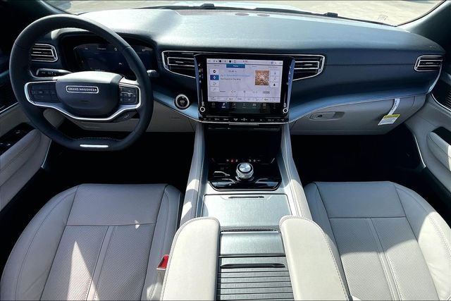 9 Speakers, ABS brakes, Alloy wheels, Anti-whiplash front head restraints, Apple CarPlay/Android Auto, Audio memory, Auto Adjust in Reverse Exterior Mirrors, Auto High-beam Headlights, Auto-dimming door mirrors, Auto-dimming Rear-View mirror, Auto-leveling suspension, Automatic temperature control, Brake assist, Delay-off headlights, Driver's Seat Mounted Armrest, Dual front impact airbags, Dual front side impact airbags, Electronic Stability Control, Emergency communication system: Jeep Connect, Exterior Mirrors with Supplemental Signals, Exterior Parking Camera Rear, Four wheel independent suspension, Front anti-roll bar, Front Bucket Seats, Front dual zone A/C, Front fog lights, Fully automatic headlights, Heated door mirrors, Heated Exterior Mirrors, Heated front seats, Heated steering wheel, Knee airbag, Low tire pressure warning, Memory seat, Navigation System, Occupant sensing airbag, Overhead airbag, Panic alarm, Power door mirrors, Power driver seat, Power Liftgate, Power passenger seat, Power windows, Quick Order Package 29E Grand Wagoneer, Radio: Uconnect 5 Nav with 12 Display, Rain sensing wipers, Rear air conditioning, Rear anti-roll bar, Rear window wiper, Reclining 3rd row seat, Remote keyless entry, Security system, Speed control, Speed-sensing steering, Speed-Sensitive Wipers, Steering wheel memory, Steering wheel mounted audio controls, Traction control, Turn signal indicator mirrors, Variably intermittent wipers, Ventilated front seats.