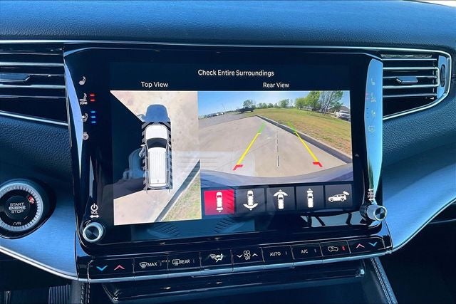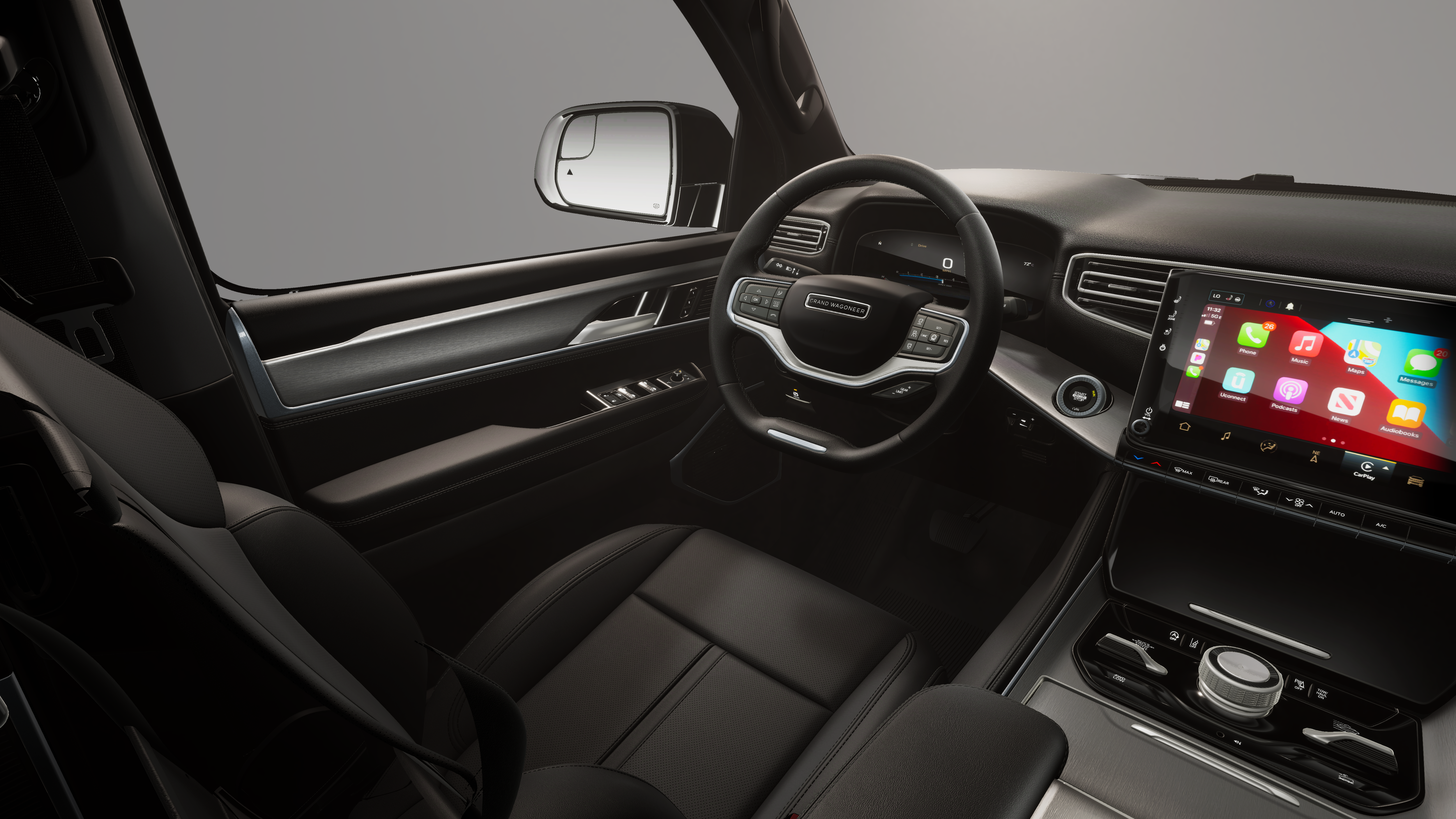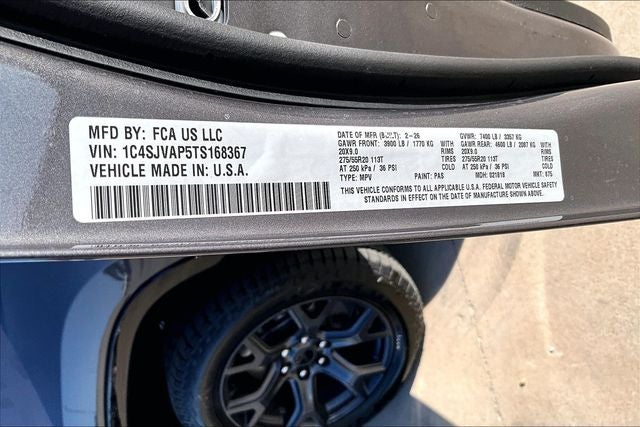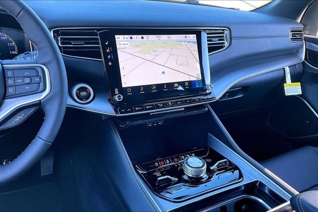 118 Mph Maximum Speed Calibration, 3 Panel Sunroof, 3.92 Rear Axle Ratio, 3rd Row 60/40 Power Recline Seat, 9 Speakers, ABS brakes, Active Cruise Control, All-Season Floor Mats, Alloy wheels, Anti-whiplash front head restraints, Audio memory, Auto Adjust in Reverse Exterior Mirrors, Auto High-beam Headlights, Auto Power Folding Exterior Mirrors, Auto Power Folding Mirrors, Auto-dimming door mirrors, Auto-Dimming Exterior Driver Mirror, Auto-leveling suspension, Automatic temperature control, Black Exterior Accents, Blind Spot with Trailer Detection, Brake assist, Cargo Cover, Cargo Tray, Compass, Delay-off headlights, Driver's Seat Mounted Armrest, Dual front impact airbags, Dual front side impact airbags, Electronic Rear Limited Slip Differential, Electronic Stability Control, Emergency communication system: Jeep Connect, Exterior Mirrors Approach Lamps, Exterior Mirrors with Memory, Exterior Mirrors with Supplemental Signals, Exterior Parking Camera Rear, Front anti-roll bar, Front dual zone A/C, Front fog lights, Fuel Tank Skid Plate Shield, Fully automatic headlights, Heated door mirrors, Heated Exterior Mirrors, Heated front seats, Heated steering wheel, Illuminated entry, Interior Rear Facing Camera, Knee airbag, Leather Trimmed Bucket Seats, Locking in-Vehicle Safe, Low tire pressure warning, Memory seat, Navigation System, Normal Duty Suspension, Occupant sensing airbag, Overhead airbag, P and P Park and Unpark Assist with Stop System, Panic alarm, Power driver seat, Power Liftgate, Power passenger seat, Power windows, Quadra-Lift Air Suspension, Quick Order Package 29V Upland, Radio: Uconnect 5 Nav with 12.0 Display, Rain sensing wipers, Rear air conditioning, Rear anti-roll bar, Rear window wiper, Reclining 3rd row seat, Remote keyless entry, Removable Rear Tow Hooks, Security system, Selec-Speed Control, Semi Active Damping, Side Distance Warning, Speed control, Speed-sensing steering, Speed-Sensitive Wipers, Steering wheel memory, Steering wheel mounted audio controls, Surround View Camera System, Telescoping steering wheel, Tilt steering wheel, Titanium Daylight Opening Upper, Titanium Upper Grille Applique, Traction control, Trailer Brake Control, Trailer Hitch Zoom, Trailer Light Monitoring, Upland Package, Vapor Tow Hooks, Variably intermittent wipers, Ventilated front seats, Wheels: 20 x 9 Aluminum Painted.