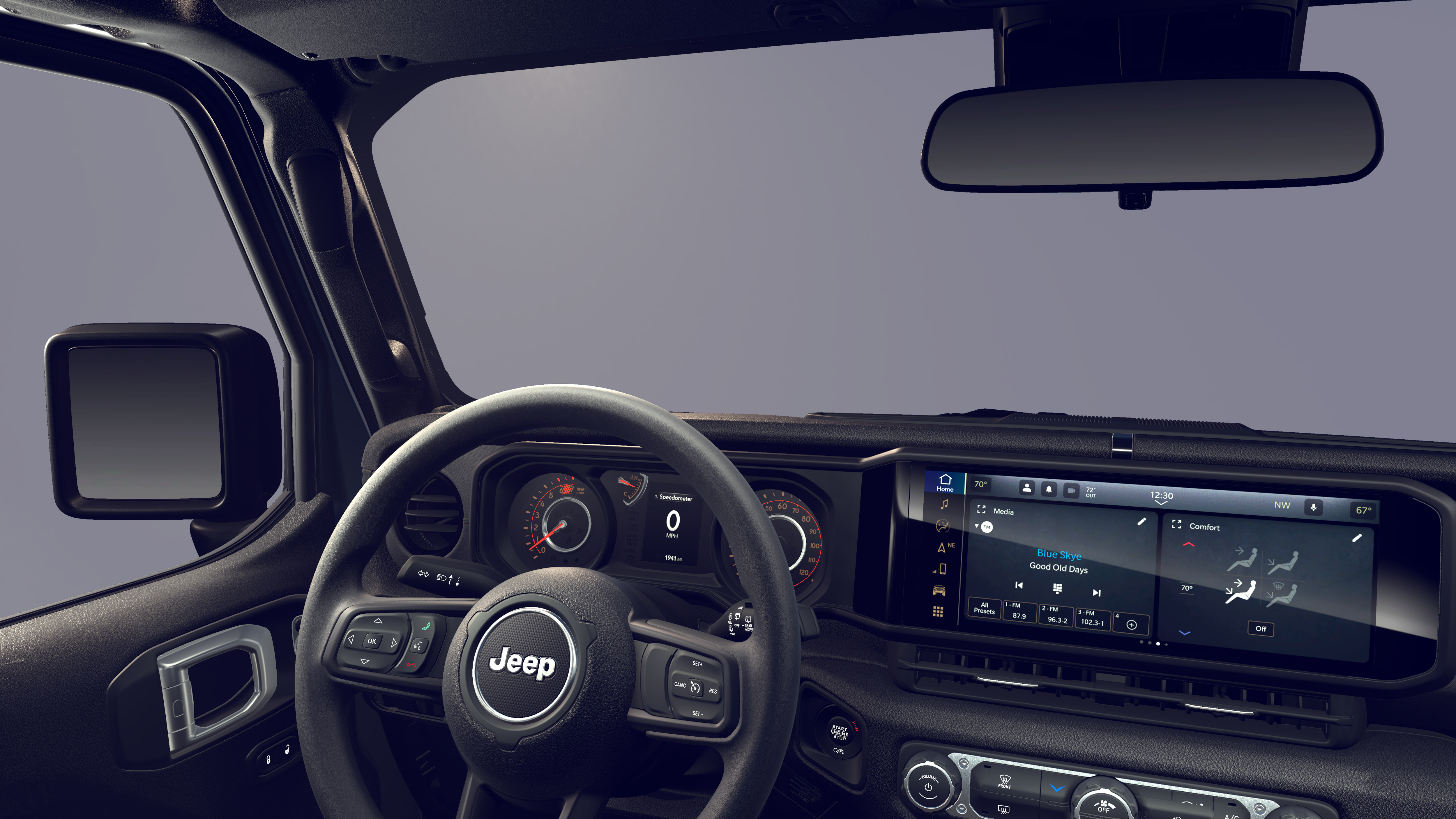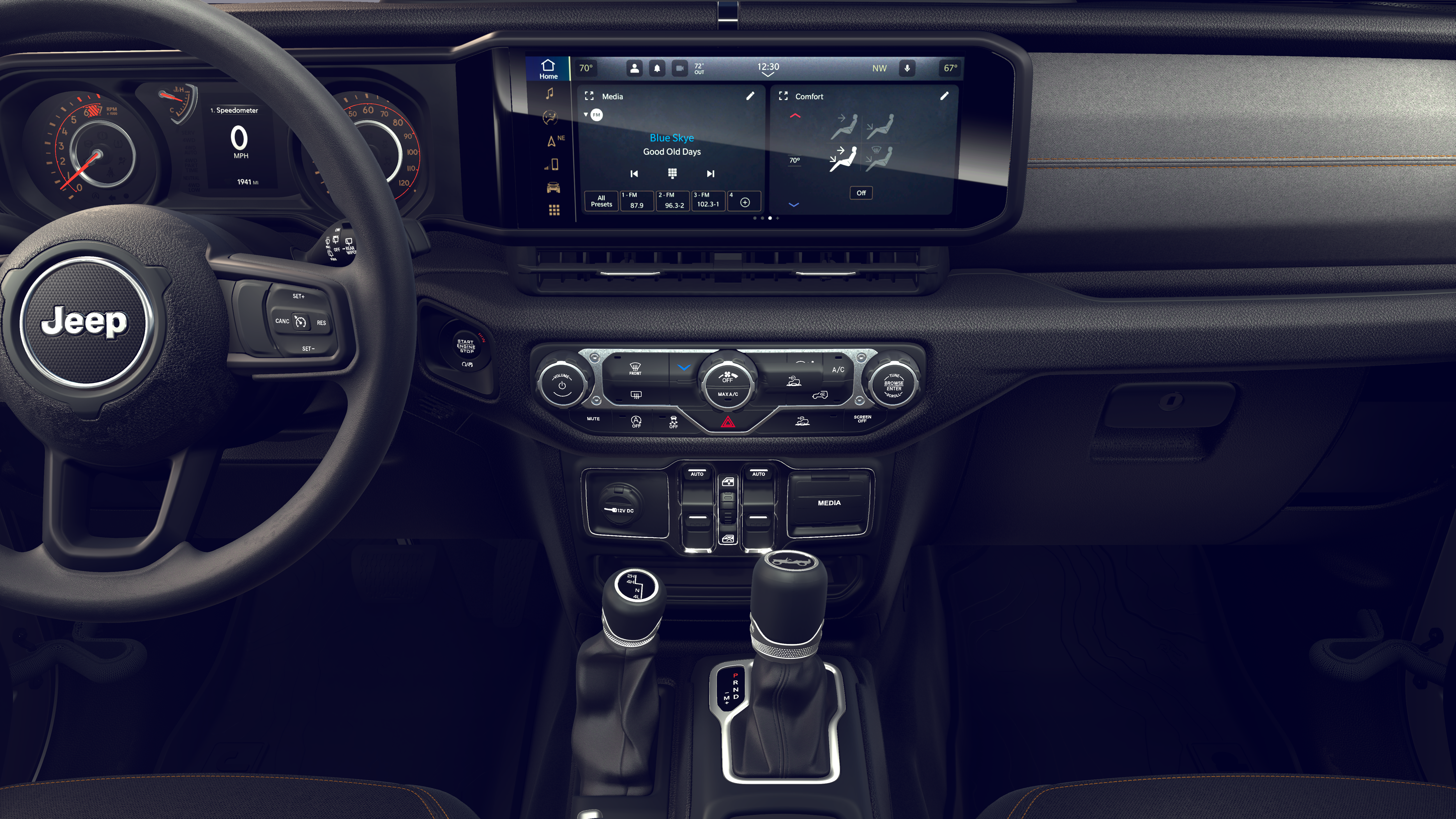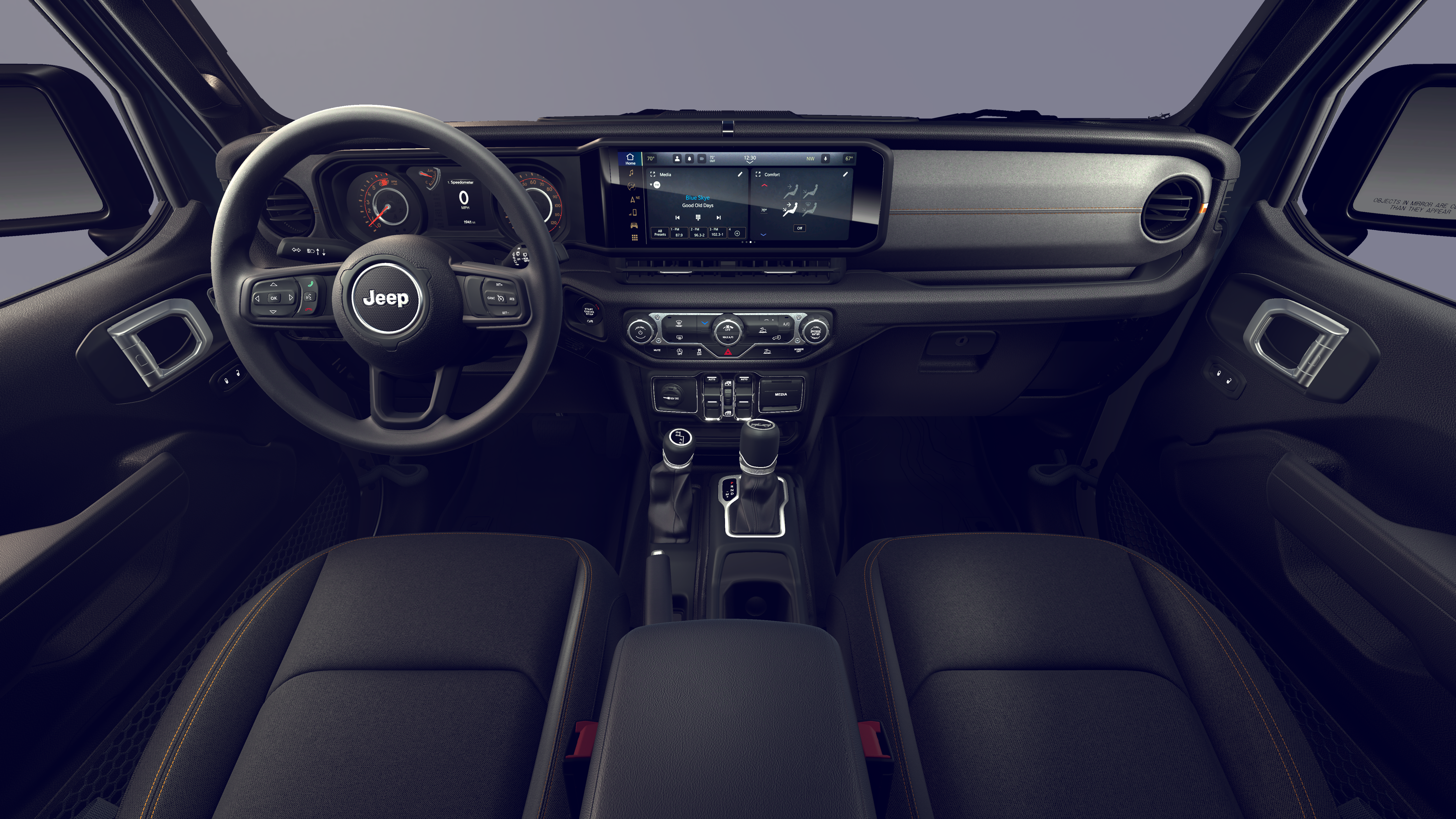 12.3 Touchscreen Display, 4G LTE Wi-Fi Hot Spot, 8 Speakers, ABS brakes, Air Conditioning, AM/FM radio: SiriusXM with 360L, Apple CarPlay, Apple CarPlay/Android Auto, Aux Battery, Black 3-Piece Hard Top, Brake assist, Compass, Delay-off headlights, Dual front impact airbags, Dual front side impact airbags, Electronic Stability Control, Freedom Panel Storage Bag, Front anti-roll bar, Front Bucket Seats, Front fog lights, Integrated Center Stack Radio, Integrated roll-over protection, Low tire pressure warning, MOPAR All-Weather Floor Mats, No Soft Top, Occupant sensing airbag, Overhead airbag, Panic alarm, ParkView Rear Back-Up Camera, Power steering, Quick Order Package 24B Sport, Radio data system, Radio: Uconnect 5 with 12.3 Display, Rear anti-roll bar, Rear Window Defroster, Rear Window Wiper/Washer, Remote keyless entry, SiriusXM with 360L, Speed control, Steering wheel mounted audio controls, Telescoping steering wheel, Tilt steering wheel, Traction control, Wheels: 17 x 7.5 Black Steel Styled.
