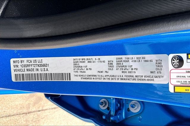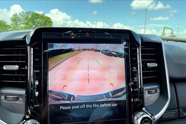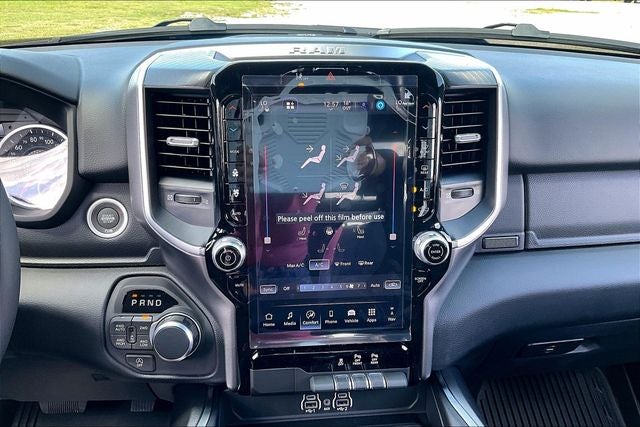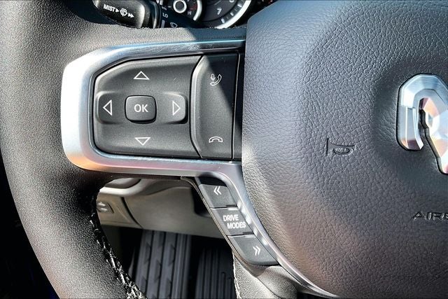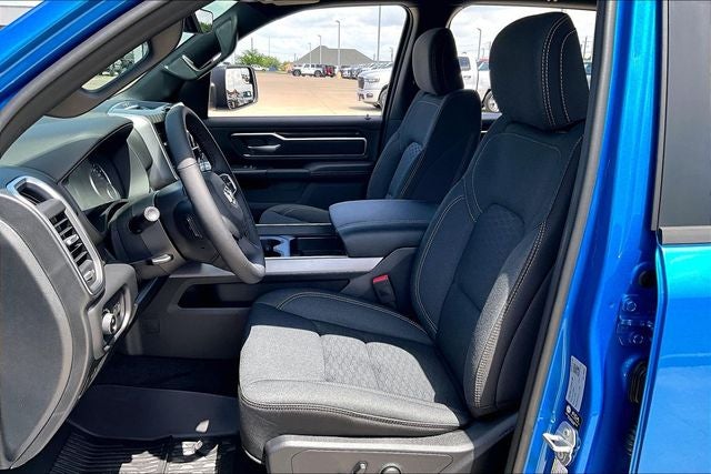 115V Auxiliary Power Outlet, 115V Auxiliary Rear Power Outlet, 12 Touchscreen Display, 2nd Row in Floor Storage Bins, 3 Rear Seat Head Restraints, 33 Gallon Fuel Tank, 4 Way Front Headrests, 400W Inverter, 4G LTE Wi-Fi Hot Spot, 9 Amplified Speakers with Subwoofer, ABS brakes, Accent Color Door Handles, Accent Color Premium Power Mirrors, Accent Color Tailgate Handle, Air Conditioning ATC with Dual Zone Control, Alloy wheels, AM/FM radio, Anti-Spin Differential Rear Axle, Apple CarPlay, Apple CarPlay/Android Auto, Auto High-beam Headlights, Auto Power-Folding Mirrors, Auto-Dimming Exterior Driver Mirror, Auto-Dimming Rear-View Mirror, Big Horn Level 2 Equipment Group, Black Exterior Mirrors, Black Exterior Truck Badging, Black Headlamp Bezels, Black Interior Accents, Black Painted Exterior Mirrors Caps, Black Premium Power Mirrors, Black Tail Lamp Bezels, Body Color Fender Flares, Body Color Front Bumper, Body Color Rear Bumper with Step Pads, Brake assist, Bucket Seats, Center Console Parts Module, Cloth Bucket Seats, Cluster 7.0 TFT Color Display, Configurable Drive Mode, Connected Travel and Traffic Services, Connectivity - US/Canada, Convex Wide-Angle Exterior Mirror Insert, Delay-off headlights, Deluxe Cloth Bucket Seats, Disassociated Touchscreen Display, Dual Exhaust with Black Tips, Dual front impact airbags, Dual front side impact airbags, Electronic Stability Control, Exterior Mirrors Courtesy Lamps, Exterior Mirrors with Heating Element, Exterior Mirrors with Supplemental Signals, Front anti-roll bar, Front fog lights, Front Seat Back Map Pockets, Front wheel independent suspension, Full Length Floor Console, Fully automatic headlights, Global Telematics Box Module, Glove Box Lamp, Google Android Auto, GPS Antenna Input, GPS Navigation, Grille Black Surround Black Mesh, HD Radio, Heated door mirrors, Heated Front Seats, Heated Steering Wheel, Integrated Center Stack Radio, Integrated Voice Command with Bluetooth®, Leather Wrapped Steering Wheel, LED Dome Lamp with on/Off Switch, LED Footwell Lighting, Lone Star Badge, Low tire pressure warning, Manual Adjust 4-Way Front Passenger Seat, Media Hub with 2 Charge Only USBs, MOPAR Front and Rear Rubber Floor Mats, Night Edition, Occupant sensing airbag, Overhead airbag, Overhead LED Lamps, Panic alarm, ParkView Rear Back-Up Camera, Power 2-Way Driver Lumbar Adjust, Power Adjust 8-Way Driver Seat, Power Adjustable Pedals, Power door mirrors, Power windows, Premium Overhead Console, Quick Order Package 27R Lone Star, Radio: Uconnect 5 Navigation with 12.0 Display, RAM Grille Badge - Black, Rear 60/40 Folding Seat, Rear anti-roll bar, Rear Center Armrest, Rear Power Sliding Window, Rear Window Defroster, Remote keyless entry, Remote Tailgate Release, Security Alarm, SiriusXM Radio Service, SiriusXM with 360L, Speed control, Steering Wheel Mounted Audio Controls, Sun Visors with Illuminated Vanity Mirrors, Telescoping steering wheel, Tilt steering wheel, Traction control, Universal Garage Door Opener, USB Host Flip, Variably intermittent wipers, Wheels: 20 x 9 Aluminum Chrome Clad.