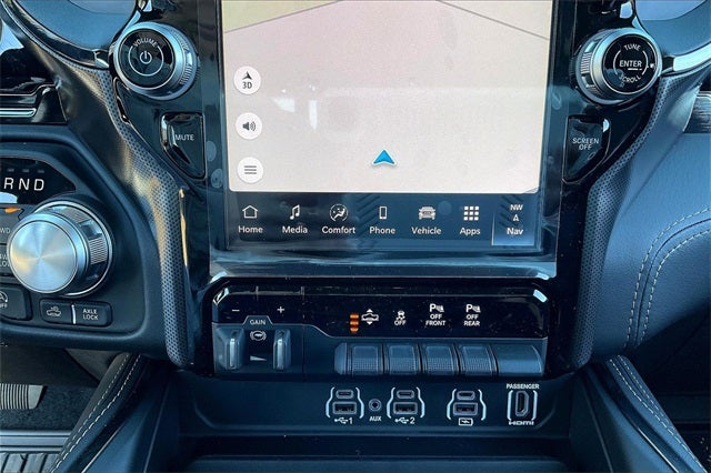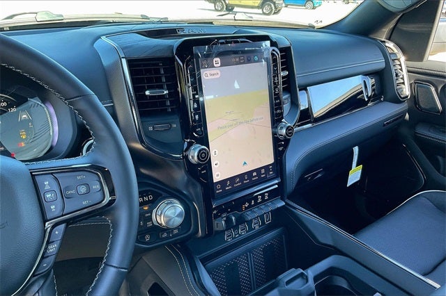 19 Speakers, 4G LTE Wi-Fi Hot Spot, Active Noise Control System, Alloy wheels, Apple CarPlay, Apple CarPlay/Android Auto, Auto High-beam Headlights, Auto Power-Folding Mirrors, Auto-dimming door mirrors, Auto-Dimming Exterior Driver Mirror, Auto-dimming Rear-View mirror, Auto-leveling suspension, Automatic temperature control, Body Color Bumper Group, Body Color Front Bumper, Brake assist, Delay-off headlights, Dome Dual LED Reading Lamp, Dual-Pane Panoramic Sunroof, E-Locker Rear Axle, Electronic Stability Control, Exterior Parking Camera Rear, Falken Brand Tires, Front Bucket Seats, Front dual zone A/C, Front fog lights, Fully automatic headlights, Garage door transmitter, Genuine wood dashboard insert, Google Android Auto, GPS Navigation, HD Radio, Heated door mirrors, Heated front seats, Heated rear seats, Heated steering wheel, LED Dome/Reading Lamp, Memory seat, Multi-Function Tailgate, Navigation System, Occupant sensing airbag, Off Road Decals, Off Road Group, Panic alarm, Pedal memory, Pirelli Brand Tires, Power door mirrors, Power driver seat, Power passenger seat, Premium Quilted Leather Bucket Seats, Quick Order Package 22M Limited, Rain sensing wipers, Raised Ride Height, RAM's Head Badge, Remote keyless entry, Remote Tailgate Release, Security system, Selec-Speed Control, Speed control, Steering wheel mounted audio controls, Trailer Brake Control, Turn signal indicator mirrors, Variably intermittent wipers, Ventilated front seats, Ventilated rear seats, Wheels: 22 x 9 Premium Paint/Polished.