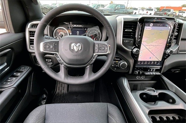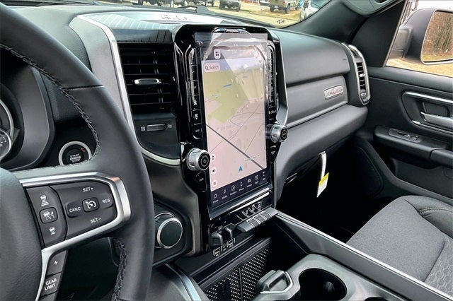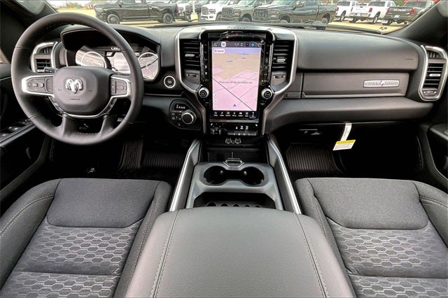 **Bluetooth®, **Backup Camera, **Navigation Systems, **Heated Seats/Heat Package, **Apple Car Play / Android Auto, **Remote Start, **Heated Seats, **Heated steering wheels, ** 4x4 Off Road Package, **Alloy Wheels, **Towing Hitch, 115V Auxiliary Power Outlet, 115V Auxiliary Rear Power Outlet, 12 Touchscreen Display, 2nd Row in Floor Storage Bins, 3 Rear Seat Head Restraints, 4 Way Front Headrests, 400W Inverter, 4G LTE Wi-Fi Hot Spot, 9 Amplified Speakers with Subwoofer, ABS brakes, Accent Color Door Handles, Accent Color Premium Power Mirrors, Accent Color Tailgate Handle, Air Conditioning ATC with Dual Zone Control, Alloy wheels, Anti-Spin Differential Rear Axle, Apple CarPlay, Apple CarPlay/Android Auto, Auto High-beam Headlights, Auto Power-Folding Mirrors, Auto-Dimming Exterior Driver Mirror, Auto-Dimming Rear-View Mirror, Big Horn Level 2 Equipment Group, Black Exterior Mirrors, Black Exterior Truck Badging, Black Headlamp Bezels, Black Interior Accents, Black Painted Exterior Mirrors Caps, Black Premium Power Mirrors, Black Tail Lamp Bezels, Body Color Fender Flares, Body Color Front Bumper, Body Color Rear Bumper with Step Pads, Brake assist, Bucket Seats, Center Console Parts Module, Cluster 7.0 TFT Color Display, Configurable Drive Mode, Connected Travel and Traffic Services, Connectivity - US/Canada, Convex Wide-Angle Exterior Mirror Insert, Delay-off headlights, Deluxe Cloth Bucket Seats, Disassociated Touchscreen Display, Dual Exhaust with Black Tips, Dual front impact airbags, Dual front side impact airbags, Electronic Stability Control, Exterior Mirrors Courtesy Lamps, Exterior Mirrors with Heating Element, Exterior Mirrors with Supplemental Signals, Front anti-roll bar, Front Bucket Seats, Front fog lights, Front Seat Back Map Pockets, Front wheel independent suspension, Full Length Floor Console, Fully automatic headlights, Global Telematics Box Module, Glove Box Lamp, Google Android Auto, GPS Antenna Input, GPS Navigation, Grille Black Surround Black Mesh, HD Radio, Heated door mirrors, Heated Front Seats, Heated Steering Wheel, Integrated Center Stack Radio, Integrated Voice Command with Bluetooth®, Leather Wrapped Steering Wheel, LED Dome Lamp with on/Off Switch, LED Footwell Lighting, Lone Star Badge, Low tire pressure warning, Manual Adjust 4-Way Front Passenger Seat, Media Hub with 2 Charge Only USBs, MOPAR Front and Rear Rubber Floor Mats, Night Edition, Occupant sensing airbag, Overhead airbag, Overhead LED Lamps, Panic alarm, ParkView Rear Back-Up Camera, Power 2-Way Driver Lumbar Adjust, Power Adjust 8-Way Driver Seat, Power Adjustable Pedals, Power door mirrors, Premium Overhead Console, Quick Order Package 27R Lone Star, Radio data system, Radio: Uconnect 5 Navigation with 12.0 Display, RAM Grille Badge - Black, Rear 60/40 Folding Seat, Rear anti-roll bar, Rear Center Armrest, Rear Power Sliding Window, Rear Window Defroster, Remote Tailgate Release, Security Alarm, SiriusXM Radio Service, SiriusXM with 360L, Speed control, Steering Wheel Mounted Audio Controls, Sun Visors with Illuminated Vanity Mirrors, Trailer Brake Control, Universal Garage Door Opener, USB Host Flip, Variably intermittent wipers, Wheels: 20 x 9.0 Aluminum Painted Clad, Wheels: 20 x 9 Aluminum Chrome Clad.