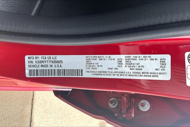 115V Auxiliary Power Outlet, 2nd Row in Floor Storage Bins, 3 Rear Seat Head Restraints, 4 Way Front Headrests, 400W Inverter, ABS brakes, Auto High-beam Headlights, Auto Power-Folding Mirrors, Auto-Dimming Exterior Driver Mirror, Auto-Dimming Rear-View Mirror, Big Horn Level 1 Equipment Group, Black Exterior Mirrors, Black Premium Power Mirrors, Body Color Fender Flares, Brake assist, Bucket Seats, Center Console Parts Module, Cloth Bucket Seats, Convex Wide-Angle Exterior Mirror Insert, Delay-off headlights, Deluxe Cloth Bucket Seats, Dual front impact airbags, Dual front side impact airbags, Electronic Stability Control, Exterior Mirrors Courtesy Lamps, Exterior Mirrors with Heating Element, Exterior Mirrors with Supplemental Signals, Front anti-roll bar, Front fog lights, Front Seat Back Map Pockets, Front wheel independent suspension, Full Length Floor Console, Fully automatic headlights, Glove Box Lamp, GPS Antenna Input, Heated Front Seats, Heated Steering Wheel, Integrated Center Stack Radio, Leather Wrapped Steering Wheel, Lone Star Badge, Low tire pressure warning, Manual Adjust 4-Way Front Passenger Seat, Occupant sensing airbag, Overhead airbag, Panic alarm, ParkView Rear Back-Up Camera, Power 2-Way Driver Lumbar Adjust, Power Adjust 8-Way Driver Seat, Power Adjustable Pedals, Power windows, Quick Order Package 27R Lone Star, Radio: Uconnect 5 W with 8.4 Display, Rear 60/40 Folding Seat, Rear anti-roll bar, Rear Center Armrest, Rear Dome with on/Off Switch Lamp, Rear Power Sliding Window, Rear Window Defroster, Remote keyless entry, SiriusXM Radio Service, SiriusXM Satellite Radio, Speed control, Steering Wheel Mounted Audio Controls, Sun Visors with Illuminated Vanity Mirrors, Traction control, Universal Garage Door Opener.