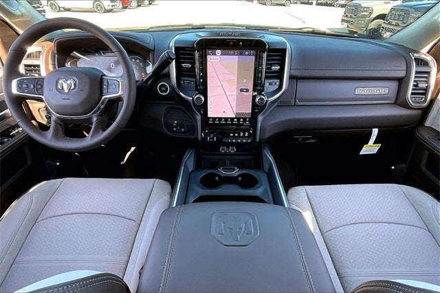 **Bluetooth®, **Backup Camera, **Navigation Systems, **Leather Seats, **Heated Seats/Heat Package, **Apple Car Play / Android Auto, **Remote Start, **Heated Seats, **Heated steering wheels, ** 4x4 Off Road Package, **LED Headlights, **Alloy Wheels, **Towing Hitch, #1 Seat Foam Cushion, 10 Speakers, 115V Auxiliary Rear Power Outlet, 2 Way Rear Headrest Seat, 2nd Row in Floor Storage Bins, 4 Way Front Headrests, 4G LTE Wi-Fi Hot Spot, 5th Wheel/Gooseneck Towing Prep Group, ABS brakes, Alexa Built-in, Alloy wheels, Anti-Spin Differential Rear Axle, Apple CarPlay, Apple CarPlay/Android Auto, Auto Adjust in Reverse Exterior Mirrors, Auto Dim Exterior Mirror, Auto High Beam Headlamp Control, Auto Power-Folding Mirrors, Auto-Dimming Exterior Passenger Mirror, Auto-dimming Rear-View mirror, Automatic temperature control, Brake assist, Bucket Seats, Chrome Exterior Mirrors, Clearance Lamps, Compass, Connected Travel and Traffic Services, Delay-off headlights, Dual front impact airbags, Dual front side impact airbags, Dual Wireless Charging Pad, Electronic Stability Control, Emergency Vehicle Alert System (EVAS), Exterior Mirrors Courtesy Lamps, Exterior Mirrors with Heating Element, Exterior Mirrors with Memory, Exterior Mirrors with Supplemental Signals, Foam Bottle Insert (door Trim Panel), Folding Flat Load Floor Storage, Forward and Reverse Utility Lights, Front anti-roll bar, Front dual zone A/C, Front fog lights, Front Seat Back Map Pockets, Full Length Upgraded Floor Console, Fully automatic headlights, Garage door transmitter, Google Android Auto, GPS Navigation, HD Radio, Heated door mirrors, Heated Front Seats, Heated Steering Wheel, Heated steering wheel, High Back Seats, Laramie Level 1 Equipment Group, Leather Trimmed Bucket Seats, Low tire pressure warning, Mirror Running Lights, Navigation System, Occupant sensing airbag, Overhead airbag, Panic alarm, ParkView Rear Back-Up Camera, Power 2-Way Driver Lumbar Adjust, Power 2-Way Passenger Lumbar Adjust, Power Adjust 8-Way Driver Seat, Power Adjust 8-Way Front Passenger Seat, Power Adjust Mirrors, Power Adjustable Pedals with Memory, Power door mirrors, Power driver seat, Power Heated Fold Telescopic Mirrors with Memory, Power passenger seat, Power steering, Power Telescoping Mirrors, Power windows, Power-Adjustable Convex Aux Mirrors, Quick Order Package 24H Laramie, Radio data system, Radio/Driver Seat/Mirrors/Pedals Memory, Rain Sensitive Windshield Wipers, Rear 60/40 Folding Seat, Rear anti-roll bar, Rear window defroster, Remote keyless entry, Remote Tailgate Release, Security system, SiriusXM with 360L, Speed control, Split folding rear seat, Steering wheel mounted audio controls, Traction control, Trailer Tow Pages, Turn signal indicator mirrors, Variably intermittent wipers, Ventilated Front Seats, Wheels: 18 x 8.0 Diamond Cut Aluminum with Black Pt Pockets.