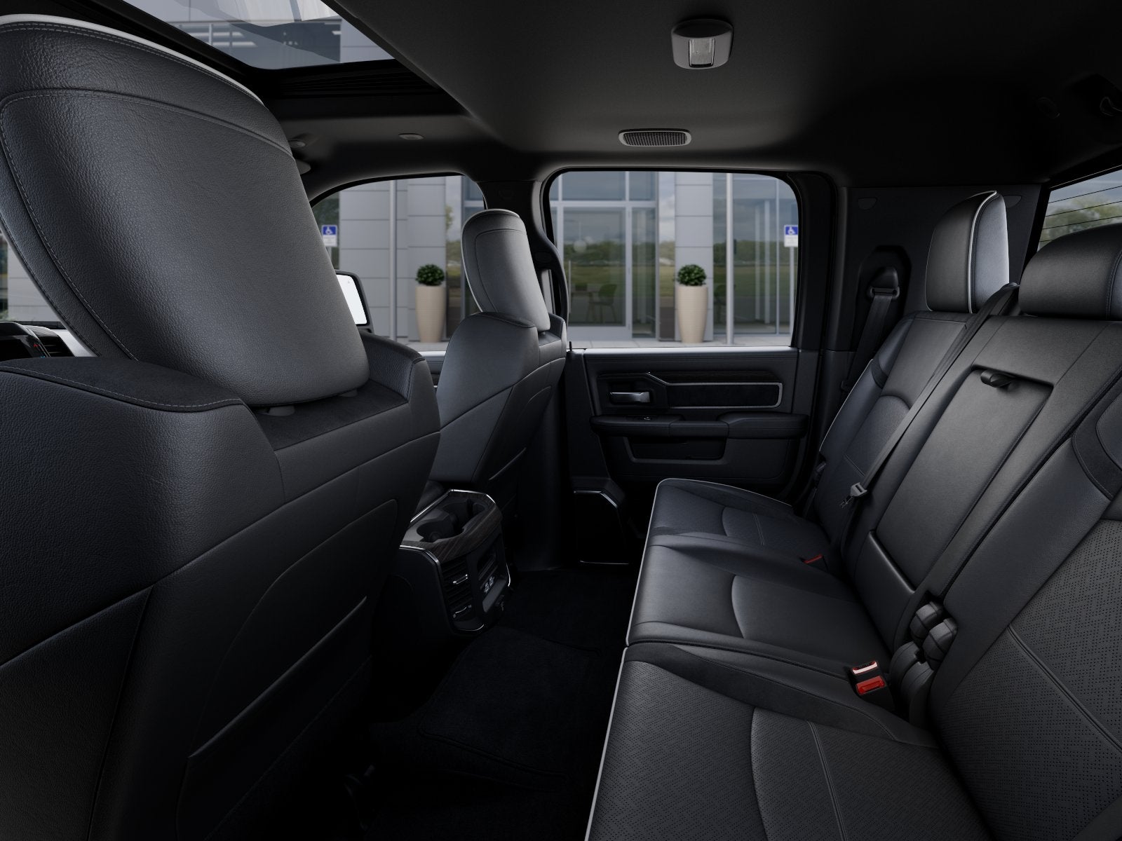 #1 Seat Foam Cushion, 10 Speakers, 115V Auxiliary Rear Power Outlet, 2 Way Rear Headrest Seat, 4 Way Front Headrests, 4G LTE Wi-Fi Hot Spot, Active Lane Management System, Adaptive Steering System, Alloy wheels, Anti-Spin Differential Rear Axle, Apple CarPlay, Apple CarPlay/Android Auto, Auto Dim Exterior Mirror, Auto High Beam Headlamp Control, Auto Power-Folding Mirrors, Auto-Dimming Exterior Passenger Mirror, Automatic temperature control, Black Exterior Truck Badging, Black Wheel Center Hub, Body Color Grille Surround, Bucket Seats, Clearance Lamps, Delay-off headlights, Drowsy Driver Detection, Dual Wireless Charging Pad, Electronic Stability Control, Exterior Mirrors Courtesy Lamps, Front dual zone A/C, Front fog lights, Front Seat Back Map Pockets, Full Length Upgraded Floor Console, Fully automatic headlights, Gloss Black Grille Billets/Accents, GPS Navigation, HD Radio, Heated Front Seats, Heated Second Row Seats, Heated Steering Wheel, High Back Seats, Laramie Level 1 Plus Equipment Group, Leather Trimmed Bucket Seats, LED Bed Lighting, Mirror Running Lights, MOPAR Deployable Bed Step, Navigation System, Night Edition, Occupant sensing airbag, ParkView Rear Back-Up Camera, Power 2-Way Driver Lumbar Adjust, Power 2-Way Passenger Lumbar Adjust, Power Adjust 8-Way Driver Seat, Power Adjust 8-Way Front Passenger Seat, Power Adjust Mirrors, Power Adjustable Convex Aux Mirrors, Power Heated Fold Telescope Mirrors w/Memory, Power Sunroof, Power Telescoping Mirrors, Quick Order Package 24H Laramie, Radio/Driver Seat/Mirrors/Pedals Memory, Rain Sensitive Windshield Wipers, Rear 60/40 Folding Seat, Remote Tailgate Release, Security system, Speed control, Sport Performance Hood, Steering wheel mounted audio controls, Surround View Camera System, Towing Technology Group, Traffic Sign Recognition, Trailer Reverse Guidance, Trailer Tire Pressure Monitoring System, Ventilated Front Seats, Wheels: 20 x 8 Black Painted Aluminum.