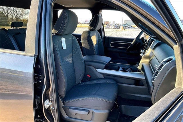 **Bluetooth®, **Backup Camera, **Navigation Systems, **Heated Seats/Heat Package, **Apple Car Play / Android Auto, **Remote Start, **Heated Seats, **Heated steering wheels, ** 4x4 Off Road Package, **Alloy Wheels, **Towing Hitch, 12 Touchscreen Display, 2 Way Rear Headrest Seat, 2nd Row in Floor Storage Bins, 4 Way Front Headrests, 40/20/40 Split Bench Seat, 4G LTE Wi-Fi Hot Spot, 5th Wheel/Gooseneck Towing Prep Group, 9 Alpine Speakers with Subwoofer, ABS brakes, Air Conditioning ATC with Dual Zone Control, Alexa Built-in, Alloy wheels, Anti-Spin Differential Rear Axle, Apple CarPlay, Apple CarPlay/Android Auto, Auto Power-Folding Mirrors, Auto-Dimming Rear-View Mirror, Big Horn Level 1 Plus Equipment Group, Black Exterior Mirrors, Black Exterior Truck Badging, Black Interior Accents, Black Wheel Center Hub, Body Color Grille-Surround, Brake assist, Center Hub, Clearance Lamps, Connected Travel and Traffic Services, Connectivity - US/Canada, Delay-off headlights, Disassociated Touchscreen Display, Dual front impact airbags, Dual front side impact airbags, Dual Glove Boxes, Electronic Stability Control, Emergency Vehicle Alert System (EVAS), Exterior Mirrors Courtesy Lamps, Exterior Mirrors with Heating Element, Exterior Mirrors with Supplemental Signals, Foam Bottle Insert (door Trim Panel), Folding Flat Load Floor Storage, Footwell Courtesy Lamp, For Details, Visit DriveUconnect.com, For More Info, Call 800-643-2112, Forward and Reverse Utility Lights, Front anti-roll bar, Front Armrest with Cupholders, Front Center Seat Cushion Storage, Front fog lights, Front Seat Back Map Pockets, Fully automatic headlights, Global Telematics Box Module, Gloss Black Nostrils/Mic Black Grille, Glove Box Lamp, Google Android Auto, GPS Antenna Input, GPS Navigation, HD Radio, Heated door mirrors, Integrated Voice Command with Bluetooth®, LED Bed Lighting, Locking Lower Glove Box, Lone Star Badge, Low tire pressure warning, Luxury Steering Wheel, Manual Adjust 4-Way Front Passenger Seat, Mirror Running Lights, MOPAR Deployable Bed Step, MOPAR Front and Rear Rubber Floor Mats, MOPAR Spray in Bedliner, Night Edition, Occupant sensing airbag, Off-Road Info Pages, Overhead airbag, Painted Flat Wheel-to-Wheel Side Steps, Painted Front Bumper, Painted Rear Bumper, Panic alarm, ParkView Rear Back-Up Camera, Power 2-Way Driver Lumbar Adjust, Power Adjust 8-Way Driver Seat, Power Adjust Mirrors, Power door mirrors, Power Heated Folding Telescopic Mirrors, Power Telescoping Mirrors, Power-Adjustable Convex Aux Mirrors, Premium Cloth 40/20/40 Bench Seat, Quick Order Package 24Y Lone Star, Radio: Uconnect 5 Navigation with 12.0 Display, Rear 60/40 Folding Seat, Rear anti-roll bar, Rear Dome with on/Off Switch Lamp, Remote Start System, Remote USB Port - Charge Only, Security system, Selectable Tire Fill Alert, SiriusXM Radio Service, SiriusXM with 360L, Speed control, Steering Wheel Mounted Audio Controls, Storage Tray, Traction control, Trailer Tow Pages, Turn signal indicator mirrors, Variably intermittent wipers, Wheels: 20 x 8.0 Black Painted Aluminum.