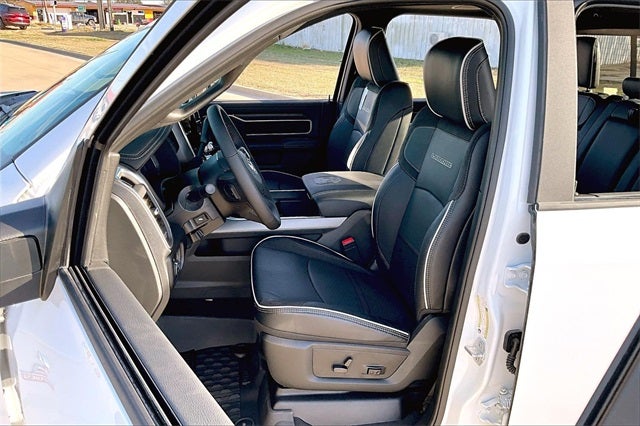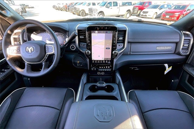 **Bluetooth®, **Backup Camera, **Navigation Systems, **Leather Seats, **Heated Seats/Heat Package, **Apple Car Play / Android Auto, **Remote Start, **Heated Seats, **Heated steering wheels, ** 4x4 Off Road Package, **LED Headlights, **Alloy Wheels, **Towing Hitch, #1 Seat Foam Cushion, 10 Speakers, 115V Auxiliary Rear Power Outlet, 2 Way Rear Headrest Seat, 2nd Row in Floor Storage Bins, 4 Way Front Headrests, 4G LTE Wi-Fi Hot Spot, 50 Gallon Fuel Tank, 5th Wheel/Gooseneck Towing Prep Group, 6000# Front Axle with Hub Extension, ABS brakes, Active Lane Management System, Adaptive Steering System, Air Conditioning, Alexa Built-in, Apple CarPlay, Apple CarPlay/Android Auto, Auto Adjust in Reverse Exterior Mirrors, Auto Dimming Exterior Passenger Mirror, Auto High Beam Headlamp Control, Auto Level Rear Air Suspension, Auto Power-Folding Mirrors, Auto-Dimming Exterior Mirrors, Auto-dimming Rear-View mirror, Automatic temperature control, Box and Rear Fender Clearance Lamps, Brake assist, Bucket Seats, Center Hub, Center Stop Lamp with Cargo View Camera, Chrome Exterior Mirrors, Clearance Lamps, Delay-off headlights, Drowsy Driver Detection, Dual front impact airbags, Dual front side impact airbags, Dual Rear Wheels, Dual Wireless Charging Pad, Electronic Stability Control, Emergency Vehicle Alert System (EVAS), Exterior Mirrors Courtesy Lamps, Exterior Mirrors with Heating Element, Exterior Mirrors with Memory, Exterior Mirrors with Supplemental Signals, Foam Bottle Insert (door Trim Panel), Folding Flat Load Floor Storage, Forward and Reverse Utility Lights, Front anti-roll bar, Front dual zone A/C, Front fog lights, Front Seat Back Map Pockets, Full Length Upgraded Floor Console, Fully automatic headlights, Google Android Auto, GPS Navigation, HD Radio, Heated door mirrors, Heated Front Seats, Heated Steering Wheel, Heated steering wheel, High Back Seats, Laramie Level 1 Plus Equipment Group, Leather Trimmed Bucket Seats, LED Bed Lighting, Low tire pressure warning, Max Tow Package, Mirror Running Lights, MOPAR Deployable Bed Step, MOPAR Spray in Bedliner, Navigation System, Nexen Brand Tires, Occupant sensing airbag, Overhead airbag, Panic alarm, ParkView Rear Back-Up Camera, Power 2-Way Driver Lumbar Adjust, Power 2-Way Passenger Lumbar Adjust, Power Adjust 8-Way Driver Seat, Power Adjust 8-Way Front Passenger Seat, Power Adjust Mirrors, Power Adjustable Pedals with Memory, Power door mirrors, Power driver seat, Power Heat Fold Memory Telescopic Mirrors, Power steering, Power Telescoping Mirrors, Power-Adjustable Convex Aux Mirrors, Quick Order Package 24H Laramie, Radio: Uconnect 5 Navigation with 12.0 Display, Rain Sensitive Windshield Wipers, Rear 60/40 Folding Seat, Rear window defroster, Remote keyless entry, Remote Tailgate Release, Security system, Speed control, Traction control, Traffic Sign Recognition, Turn signal indicator mirrors, Wheels: 17 x 6.0 Polished Aluminum.