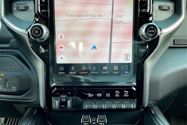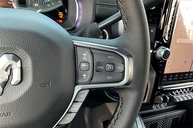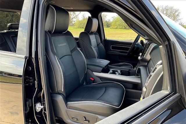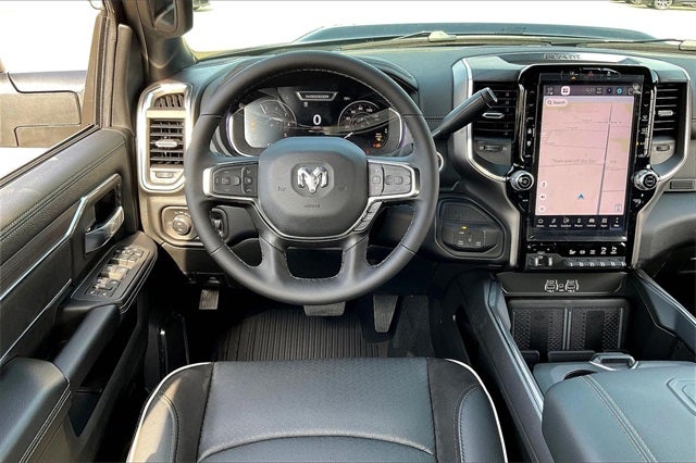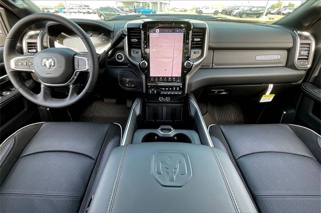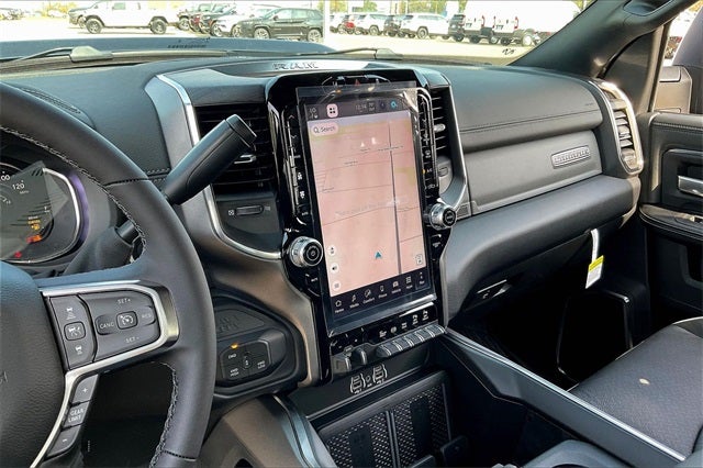 #1 Seat Foam Cushion, 10 Speakers, 115V Auxiliary Rear Power Outlet, 2 Way Rear Headrest Seat, 4 Way Front Headrests, 50 Gallon Fuel Tank, 5th Wheel/Gooseneck Towing Prep Group, Active Lane Management System, Adaptive Steering System, Alloy wheels, Apple CarPlay, Apple CarPlay/Android Auto, Auto Dimming Exterior Passenger Mirror, Auto High Beam Headlamp Control, Auto Level Rear Air Suspension, Auto Power-Folding Mirrors, Auto-Dimming Exterior Mirrors, Auto-dimming Rear-View mirror, Automatic temperature control, Black Wheel Center Hub, Body Color Grille Surround, Brake assist, Bucket Seats, Chrome Exterior Mirrors, Clearance Lamps, Delay-off headlights, Drowsy Driver Detection, Dual Rear Wheels, Dual Wireless Charging Pad, Electronic Stability Control, Emergency Vehicle Alert System (EVAS), Exterior Mirrors Courtesy Lamps, Folding Flat Load Floor Storage, Front dual zone A/C, Front fog lights, Front Seat Back Map Pockets, Full Length Upgraded Floor Console, Fully automatic headlights, Garage door transmitter, Google Android Auto, GPS Navigation, HD Radio, Heated door mirrors, Heated Front Seats, Heated Steering Wheel, Heated steering wheel, High Back Seats, Laramie Level 1 Plus Equipment Group, Leather Trimmed Bucket Seats, LED Bed Lighting, Max Tow Package, Mirror Running Lights, MOPAR Deployable Bed Step, Navigation System, Nexen Brand Tires, Occupant sensing airbag, Panic alarm, ParkView Rear Back-Up Camera, Power 2-Way Driver Lumbar Adjust, Power 2-Way Passenger Lumbar Adjust, Power Adjust 8-Way Driver Seat, Power Adjust 8-Way Front Passenger Seat, Power Adjust Mirrors, Power door mirrors, Power driver seat, Power Heat Fold Memory Telescopic Mirrors, Power Telescoping Mirrors, Power-Adjustable Convex Aux Mirrors, Quick Order Package 24H Laramie, Rain Sensitive Windshield Wipers, Rear 60/40 Folding Seat, Remote keyless entry, Remote Tailgate Release, Security system, Speed control, Sport Appearance Package, Sport Decal, Sport Performance Hood, Steering wheel mounted audio controls, Traffic Sign Recognition, Trailer Tow Pages, Turn signal indicator mirrors, Variably intermittent wipers, Wheels: 17 x 6.0 Polished Aluminum.