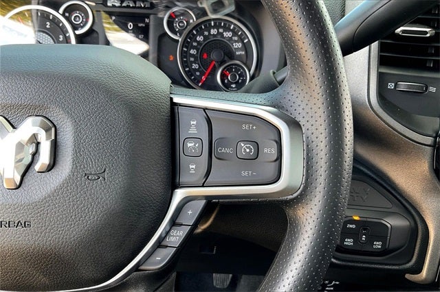 12 Touchscreen Display, 2 Way Rear Headrest Seat, 4 Way Front Headrests, 40/20/40 Split Bench Seat, 400W Inverter, 4G LTE Wi-Fi Hot Spot, 5th Wheel/Gooseneck Towing Prep Group, Apple CarPlay, Apple CarPlay/Android Auto, Auto Power-Folding Mirrors, Auto-Dimming Rear-View Mirror, Bed Utility Group, Black Exterior Mirrors, Brake assist, Bright Front Bumper, Bright Rear Bumper, Carpet Floor Covering, Center Hub, Chrome Grille Surround, Clearance Lamps, Cloth 40/20/40 Bench Seat, Connectivity - US/Canada, Convenience Group, Delay-off headlights, Disassociated Touchscreen Display, Dual Rear Wheels, Electronic Stability Control, Emergency Vehicle Alert System (EVAS), Exterior 115V AC Outlet, Exterior Mirrors Courtesy Lamps, For Details Visit DriveUconnect.com, For More Info, Call 800-643-2112, Front fog lights, Fully automatic headlights, Google Android Auto, GPS Antenna Input, GPS Navigation, HD Radio, LED Bed Lighting, LED Tail Lamps, Manual Adjust 4-Way Driver Seat, Manual Adjust 4-Way Front Passenger Seat, Manual Folding Exterior Mirrors, Max Tow Package, Mirror Running Lights, Mopar Black Tubular Side Steps, MOPAR Deployable Bed Step, Nexen Brand Tires, Occupant sensing airbag, Off-Road Information Pages, Panic alarm, ParkSense Front/Rear Park Assist System, ParkView Rear Back-Up Camera, Power Adjust Mirrors, Power Heat Fold Telescopic Mirrors, Power Heated Fold Telescopic Mirrors, Power Telescoping Mirrors, Power-Adjustable Convex Aux Mirrors, Quick Order Package 24A Tradesman, Rear Folding Seat, Rear Power Sliding Window, Rear Wheelhouse Liners, Red Tail Lamp Bezels, Remote USB Port - Charge Only, Selectable Tire Fill Alert, SiriusXM Radio Service, Speed control, Storage Tray, Surround View Camera System, Tinted Acoustic Windshield Glass, Towing Technology Group, Traction control, Trailer Reverse Guidance, Trailer Tire Pressure Monitoring System, Trailer Tow Pages, Variably intermittent wipers.
