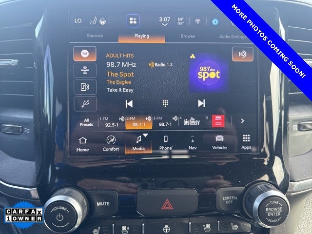 Recent Arrival! RWD **Bluetooth®, **Backup Camera, **Navigation Systems, **Leather Seats, **Heated Seats/Heat Package, **Apple Car Play / Android Auto, **Remote Start, **Heated Seats, **Heated steering wheels, **Audio Package, **LED Headlights, **Alloy Wheels, **Towing Hitch, **One Owner, #1 Seat Foam Cushion, 2nd Row In Floor Storage Bins, 3 Rear Seat Head Restraints, 33 Gallon Fuel Tank, 4 Way Front Headrests, 4G LTE Wi-Fi Hot Spot, 8.4 Touchscreen Display, ABS brakes, Accent Color Premium Power Mirrors, Adjustable pedals, All R1 High Radios, All Radio Equipped Vehicles, Alloy wheels, Anti-Spin Differential Rear Axle, Apple CarPlay, Apple CarPlay/Android Auto, Audio memory, Auto High Beam Headlamp Control, Auto-dimming door mirrors, Auto-Dimming Exterior Driver Mirror, Auto-dimming Rear-View mirror, Automatic temperature control, Black Exterior Truck Badging, Black Headlamp Bezels, Black Interior Accents, Black Painted Exterior Mirrors Caps, Blind Spot & Cross Path Detection, Body Color Door Handles, Body Color Front Bumper, Body Color Rear Bumper w/Step Pads, Brake assist, Bucket Seats, Compass, Connected Travel & Traffic Services, Connectivity - US/Canada, Convex Wide-Angle Mirror Insert, Delay-off headlights, Delete LED Lamp - Floor Console Bin, Disassociated Touchscreen Display, Driver Seat Memory, Dual Exhaust w/Black Tips, Dual front impact airbags, Dual front side impact airbags, Electronic Stability Control, Exterior Mirrors Courtesy Lamps, Exterior Mirrors w/Heating Element, Exterior Mirrors w/Memory, Exterior Mirrors w/Supplemental Signals, Foam Bottle Insert (Door Trim Panel), For Details, Visit DriveUconnect.com, For More Info, Call 800-643-2112, Front anti-roll bar, Front dual zone A/C, Front fog lights, Front Seat Back Map Pockets, Front wheel independent suspension, Full Length Upgraded Floor Console, Fully automatic headlights, Garage door transmitter, Global Telematics Box Module (TBM), Google Android Auto, GPS Antenna Input, GPS Navigation, Grille Surround 3 Black Texture 2 Black, harman/kardon 19 Speaker Premium Sound, HD Radio, Heated door mirrors, Heated Front Seats, Heated front seats, Heated Steering Wheel, Heated steering wheel, Integrated Center Stack Radio, Integrated Voice Command w/Bluetooth®, Laramie Level II Equipment Group, Leather steering wheel, Leather Trimmed Bucket Seats, Low tire pressure warning, Memory seat, Mopar Black Tubular Side Steps, MOPAR Front & Rear Rubber Floor Mats, Navigation System, Night Edition, Occupant sensing airbag, Overhead airbag, Panic alarm, ParkSense Front/Rear Park Assist w/Stop, Pedal memory, Power 2-Way Driver Lumbar Adjust, Power 2-Way Passenger Lumbar Adjust, Power 8-Way Driver & Passenger Seats, Power door mirrors, Power driver seat, Power passenger seat, Power windows, Power-Folding Mirrors, Quick Order Package 27H Laramie, Radio: Uconnect 5 Nav w/8.4 Display, Rain Sensitive Windshield Wipers, Rear 60/40 Folding Seat, Rear anti-roll bar, Remote keyless entry, Remote Tailgate Release, Security system, SiriusXM Radio Service, SiriusXM w/360L, Speed control, Sport Performance Hood, Steering wheel mounted audio controls, Telescoping steering wheel, Tilt steering wheel, Traction control, Turn signal indicator mirrors, Twill Film Appliques, USB Host Flip, Ventilated Front Seats, Ventilated front seats, Wheels: 22 x 9 Forged Aluminum, Wireless Charging Pad.